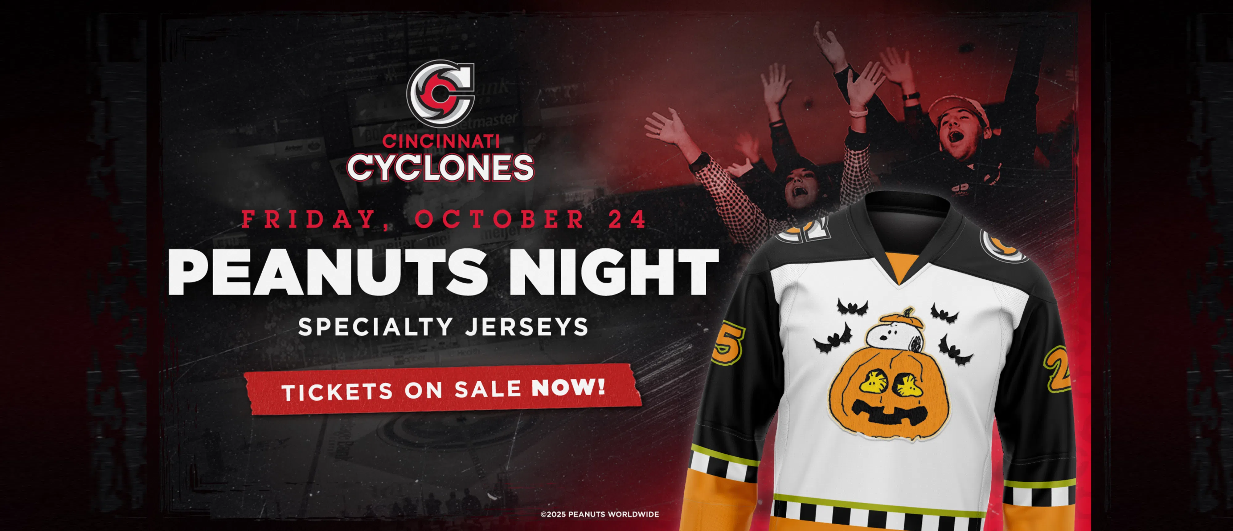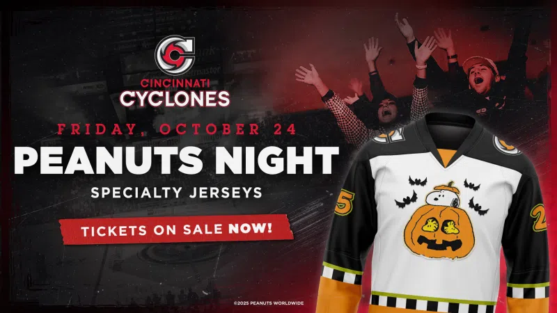 The Cincinnati Cyclones take on the Fort Wayne Komets this Friday night at Heritage Bank Center for "Peanuts" Night! The Cyclones wear special "The Great Pumpkin" Peanuts jerseys and it's 5-1-3 Night! $5 craft drafts and seltzers, $1 popcorn and $3 burgers! Be the first caller with the right answer ...